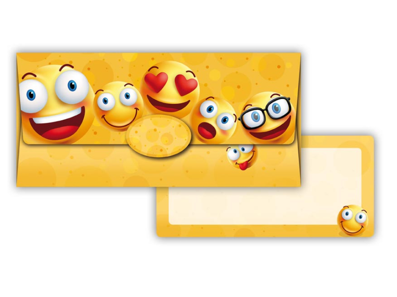 Darčeková obálka na peniaze s celoročným motívom. Urobte oslávencovi radosť a venujte mu obálku s peniazmi alebo darčekovým poukazom. Vo vnútri je kartička bez textu, na ktorú môžete napísať venovanie. PRODUKCIA: žltá so smajlíkmi Dodávame v plastovom vrecku so závesom. Uvedená cena je za 1 ks.