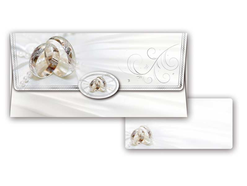Darčeková obálka na peniaze so svadobným motívom. Vo vnútri je kartička bez textu, na ktorú môžete napísať venovanie. Dodávame v plastovom sáčku so závesom. Uvedená cena je za 1 ks.