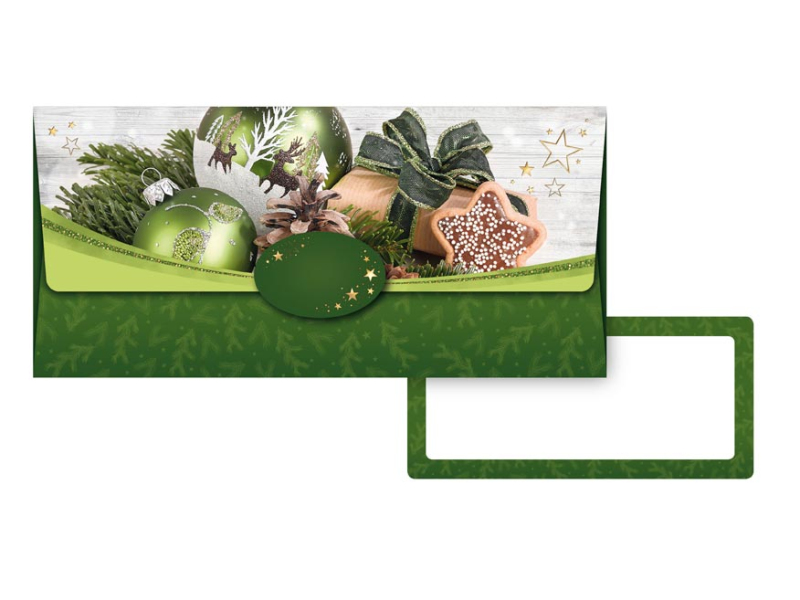 Darčeková obálka na peniaze s vianočným motívom a uzatváracou klapkou. – Darujte svojim blízkym darček k Vianociam v podobe obálky na peniaze. Do obálky môžete vložiť peniaze alebo darčekovú poukážku. Vo vnútri je kartička bez textu, na ktorú môžete napísať venovanie. Uvedená cena je za 1 ks. Dodávame v plastovom obale so závesom.