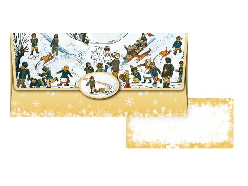 Darčeková obálka na peniaze s vianočným motívom a s uzatvárateľnou klapkou. Darujte svojim blízkym darček k Vianociam v podobe obálky na peniaze. Do obálky môžete vložiť peniaze alebo darčekovú poukážku. Vo vnútri je kartička bez textu, na ktorú môžete napísať venovanie. Motív: motívy Jozefa Ladu Dodávame v plastovom obale so závesom. Uvedená cena je za 1 ks.
