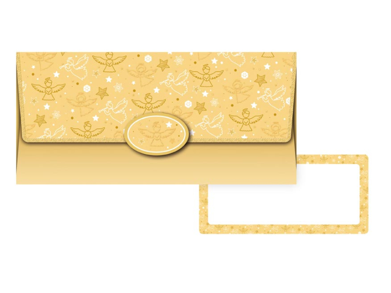 Darčeková obálka na peniaze s vianočným motívom a uzatváracou klapkou. Darujte svojim blízkmy darček k Vianociam v podobe obálky na peniaze. Do obálky vložte peniaze alebo darčekový poukaz. Vo vnútri je kartička, na ktorú môžete napísať venovanie. Dodávame v plastovom vrecku so závesom. Uvedená cena je za 1 ks.