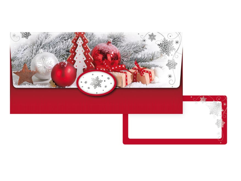 Darčeková obálka na peniaze s vianočným motívom a uzatvárateľnou klapkou. Darujte svojim blízkym darček k Vianociam v podobe obálky na peniaze. Do obálky sa môžu vložiť peniaze alebo darčekový poukaz. Vo vnútri je kartička bez textu, na ktorú môžete napísať venovanie. Dodávame v plastovom vrecku so závesom. Uvedená cena je za 1 ks.