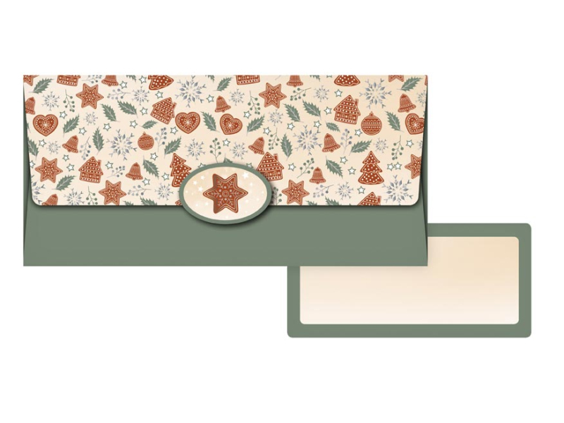 Darčeková obálka na peniaze s vianočnými motívmi a uzatvárateľnou chlopňou. Je ideálny na darčekové účely, kedy chcete peniaze odovzdať elegantným a vkusným spôsobom. Vnútri je kartička bez textu, na ktorú môžete napísať venovanie. MOTIV: vianočné motívy Dodávame v plastovom sáčku. Uvedená cena je za 1 ks.