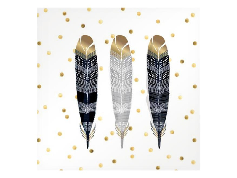 Trojvrstvový papierový obrúsok. Krásne vysokokvalitné obrúsky s motívom pierok a bodiek vyčarujú príjemnú atmosféru. Ideálne na záhradné prestieranie, oslavy alebo výzdobu interiéru. MOTÍV: pierka, bodky POČET OBRÚSKOV V BALENÍ: 20 ks Uvedená cena je za 1 balenie s 20 ks.
