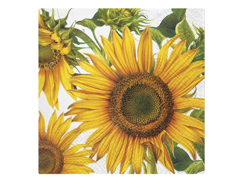 Trojvrstvový papierový obrúsok. Krásne kvalitné obrúsky s motívom slnečnice na bielom pozadí vyčarujú príjemnú atmosféru. Ideálne na záhradné prestieranie, oslavy alebo výzdobu interiéru. MOTÍV: slnečnice POČET OBRÚSKOV V BALENÍ: 20 ks Uvedená cena je za 1 balenie po 20 ks.