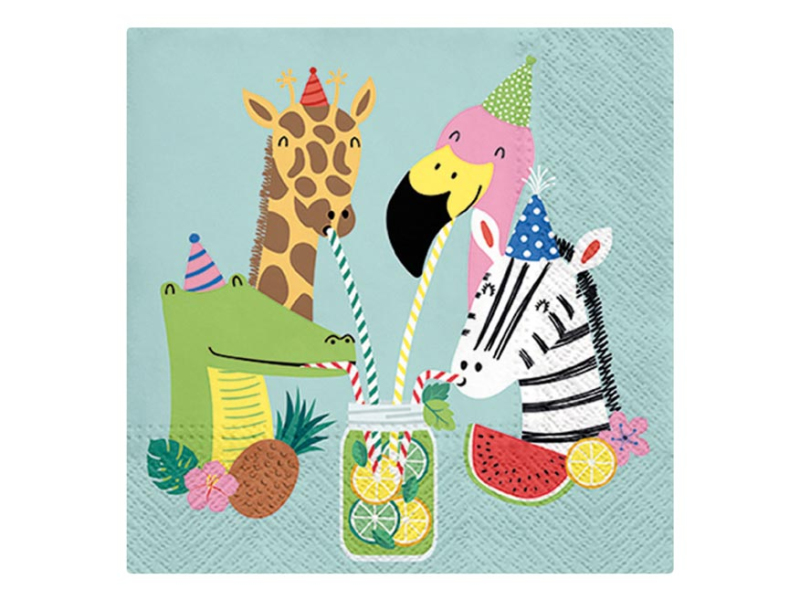 Trojvrstvový papierový obrúsok. Krásne kvalitné obrúsky s motívom párty zebry, plameniaka, žirafy a krokodíla vyčarujú príjemnú atmosféru. Ideálne na záhradné prestieranie, párty alebo na výzdobu interiéru. MOTÍV: zebra, plameniak, žirafa, krokodýl POČET OBRÚSKOV V BALENÍ: 20 ks Uvedená cena je za 1 balenie po 20 ks.
