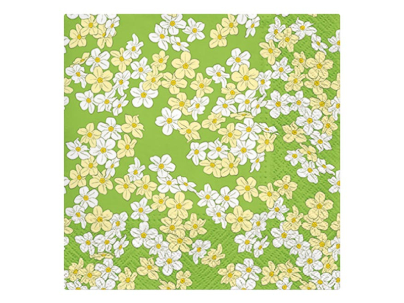 Trojvrstvový papierový obrúsok. Krásne kvalitné obrúsky s motívom drobných kvetov na zelenom pozadí vyčarujú príjemnú atmosféru. Ideálne na záhradné prestieranie, oslavy alebo výzdobu interiéru. MOTÍV: kvety POČET obrúskov v balení: 20 ks Uvedená cena je za 1 balenie po 20 ks.
