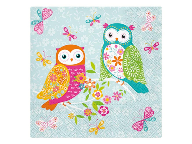 Trojvrstvový papierový obrúsok. Krásne kvalitné obrúsky s motívom sovičiek vyčarujú príjemnú atmosféru. Ideálne na záhradné prestieranie, oslavy alebo výzdobu interiéru. MOTÍV: sovy POČET OBRÚSKOV V BALENÍ: 20 ks Uvedená cena je za 1 balenie po 20 ks.