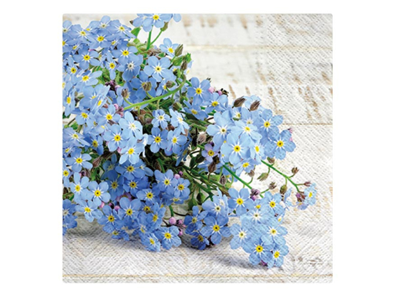 Trojvrstvový papierový obrúsok. Krásne kvalitné obrúsky s motívom modrých drobných kvetov vyčarujú príjemnú atmosféru. Ideálne na záhradné prestieranie, oslavy alebo výzdobu interiéru. MOTÍV: kvety POČET OBRÚSKOV V BALENÍ: 20 ks Uvedená cena je za 1 balenie po 20 ks.