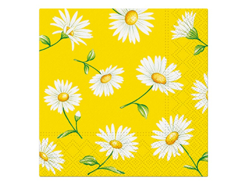 Trojvrstvový papierový obrúsok. Krásne kvalitné obrúsky s motívom sedmokrások na žltom pozadí vyčarujú príjemnú atmosféru. Ideálne na záhradné prestieranie, oslavy alebo na výzdobu interiéru. MOTÍV: Sedmokrásky POČET OBRÚSKOV V BALENÍ: 20 ks Uvedená cena je za 1 balenie po 20 ks.