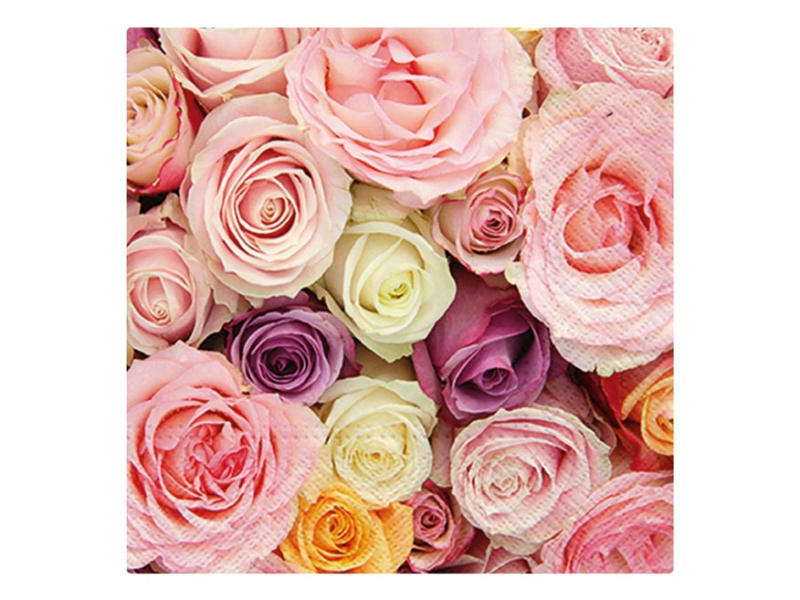 Trojvrstvový papierový obrúsok. Krásne kvalitné obrúsky s motívom rôznofarebných kvetov ruže vykúzlia príjemnú atmosféru. Ideálna na záhradné prestieranie, oslavy alebo na skrášlenie interiéru. MOTIV: kvety ruže POČET OBRÚSKOV V BALENÍ: 20 ks Uvedená cena je za 1 balenie po 20 ks.