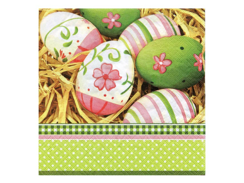 Papierový veľkonočný obrúsok. Obrúsok je z trojvrstvového papiera. Krásne veľkonočné obrúsky dodajú prestretému stolu nádych prichádzajúcej jari a vyčaria príjemnú atmosféru pri slávnostnom obede alebo pri večeri. MOTIV: maľované vajíčka POČET UBROUSKŮ V BALENÍ: 20 ks Uvedená cena je za 1 balení po 20 ks.