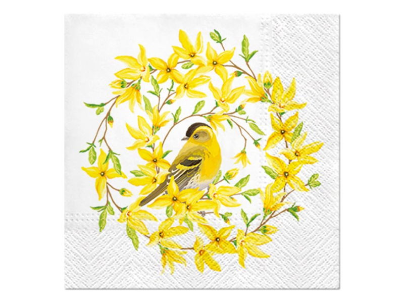 Papierový veľkonočný obrúsok. Servítky s jarným motívom rozžiaria váš stôl a vnesú do vašich domovov sviežu atmosféru. Servítka je vyrobená z kvalitného trojvrstvového papiera. Vhodné aj na obrúskovú techniku. MOTÍV: vtáčik na vetvičke zlatobyle POČET OBRÚSKOV V BALENÍ: 20 ks Uvedená cena je za 1 balenie po 20 ks.