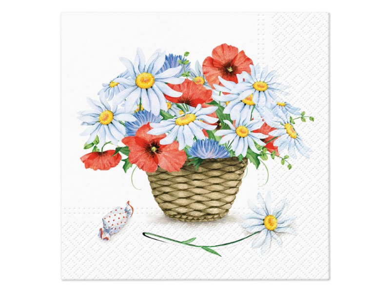 Papierový veľkonočný obrúsok. Obrúsky s obrázkom plného košíka kvetov prinesú na váš stôl jar. Obrúsok je vyrobený z kvalitného trojvrstvového papiera. Vhodné aj na obrúskovú techniku a rôzne dekorácie. MOTÍV: košík kvetov POČET OBRÚSKOV V BALENÍ: 20 ks Uvedená cena je za 1 balenie s 20 kusmi.