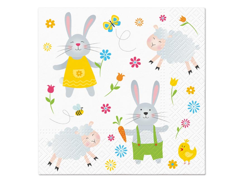 Papierový veľkonočný obrúsok. Krásne veľkonočné obrúsky s obrázkami kvetov, zajačikov a ovečiek dodajú prestretému stolu nádych jari a vyčarujú príjemnú atmosféru pri slávnostnom obede alebo večeri. Obrúsok je vyrobený z kvalitného trojvrstvového papiera. Vhodné aj na obrúskovú techniku a rôzne dekorácie. MOTÍV: kvety, zajačiky, ovečky POČET KAPIEK V BALENÍ: 20 ks Uvedená cena je za 1 balenie po 20 ks.
