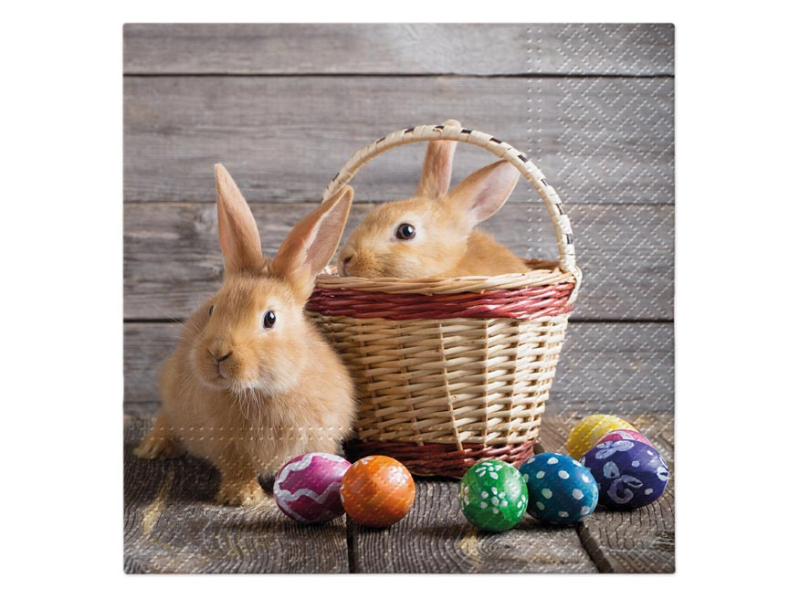 Papierový veľkonočný obrúsok. Krásne veľkonočné obrúsky s obrázkami zajačikov, veľkonočných vajíčok a košíka dodajú prestretému stolu nádych jari a vyčarujú príjemnú atmosféru pri slávnostnom obede alebo večeri. Obrúsok je vyrobený z kvalitného trojvrstvového papiera. Vhodné aj na obrúskovú techniku a rôzne dekorácie. MOTÍV: zajačikovia, veľkonočné vajíčka, košík POČET OBRÚSKOV V BALENÍ: 20 ks Uvedená cena je za 1 balenie po 20 ks.