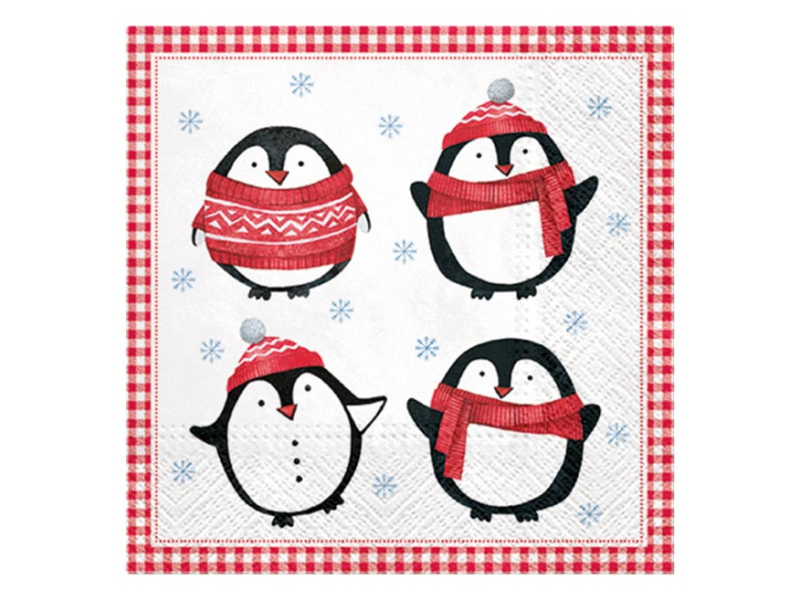 Papierový vianočný obrúsok. Obrúsok je z veľmi kvalitného trojvrstvového papiera s motívom vianočných tučniakov. Vytvorenie dôstojnej vianočnej atmosféry je založené na maličkostiach. Aj taká maličkosť, ako sú vianočné obrúsky, zmení charakter vášho stolovania. MOTÍV: vianočné tučniaky POČET OBRÚSKOV V BALENÍ: 20 ks Uvedená cena je za 1 balenie po 20 ks.