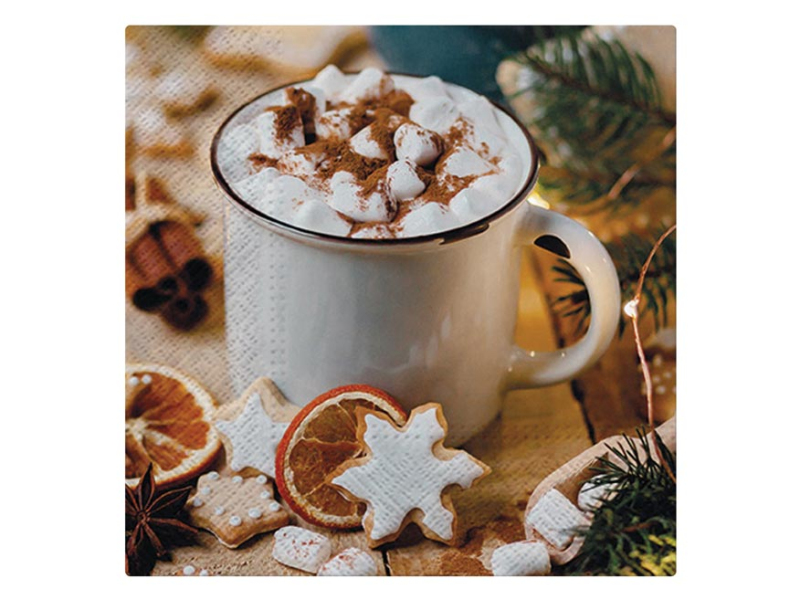 Papierový vianočný obrúsok s motívom zimného horúceho nápoja, sušených pomarančov a perníkov je vyrobený z kvalitného trojvrstvového papiera. Tento obrúsok je ideálny na použitie pri vianočnom stolovaní. Možno ho použiť počas slávnostných večerí, osláv s rodinou a priateľmi alebo pri servírovaní dezertov a horúcich nápojov počas vianočného obdobia. Okrem toho ho možno použiť aj ako dekoráciu na vianočnom stole alebo pri príprave darčekových balíčkov s jedlom alebo sladkosťami. MOTÍV: horúci nápoj POČET OBRÚSOK V BALENÍ: 20 ks Uvedená cena je za 1 balenie po 20 ks.
