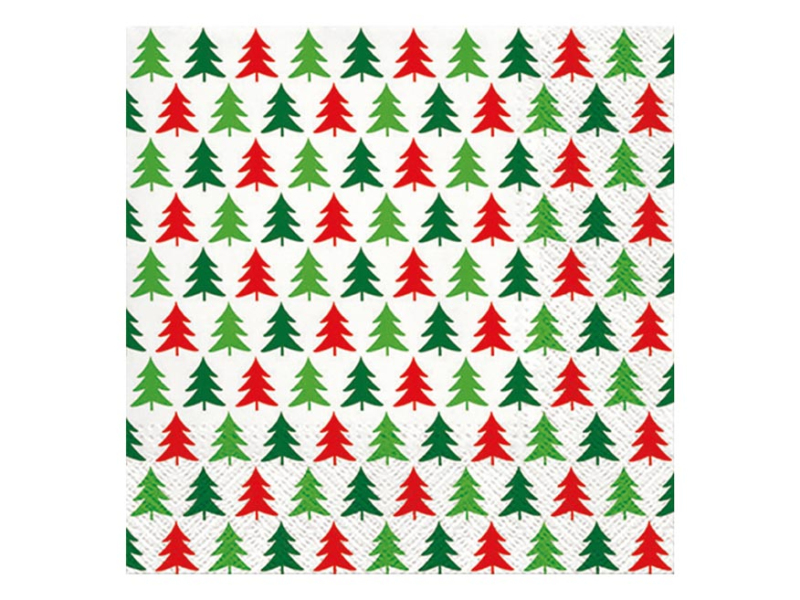 Papierové vianočné obrúsky. Kvalitné vianočné obrúsky z trojvrstvového papiera s motívom stromčekov. Sú krásnym vianočným doplnkom, ktorý spestrí vianočným doplnkom, ktoré spestrí vianočné prestieranie a vyčaruje príjemnú atmosféru. MOTIV: stromčeky POČET OBRÚSKOV V BALENÍ: 20 ks Uvedená cena je za 1 balenie po 20 ks.