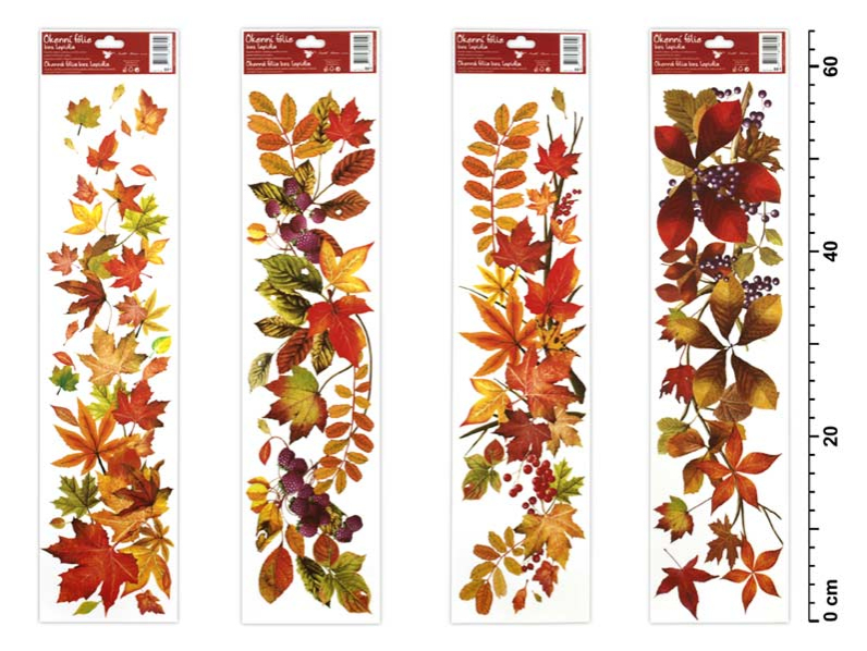 Okenná fólia jesenné lístie. Vyzdobte si okno týmito krásnymi samolepkami na okno. Vytvorí Vám kúzelnú atmosféru domova. Na plochu priľnú elektrostaticky a nezanechávajú teda po sebe žiadnu stopu. NÁVOD: 1. Odlúpnite z podložky obrázok a umiestnite na čisté, prípadne navlhčené sklo stranou, ktorá bola na podložke. 2. Obrázok elektrostaticky priľne. 3. Fólia sa ľahko zlúpne a dá sa premiestniť. Dodávame v mixe po 4 ks podľa skladovej zásoby. Uvedená cena je za 1 ks.