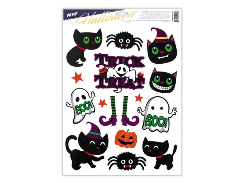Okenná fólia Halloween. Vyzdobte si okno týmito strašidelnými samolepkami. Vytvorí Vám tú pravú halloweensku atmosféru. Vhodné sú na akékoľvek hladké plochy, napríklad sklo, výlohy, zrkadlá alebo kachličky. Čisté, bez lepidla a opakovane použiteľné. NÁVOD: 1. Zlúpnite z podložky obrázok a umiestnite na čisté, prípadne navlhčené sklo stranou, ktorá bola na podložke. 2. Obrázok elektrostaticky priľne. 3. Fólia sa ľahko zlúpne a dá sa premiestniť. Dodávame v mixe po 4 ks podľa skladovej zásoby. Uvedená cena je za 1 ks.