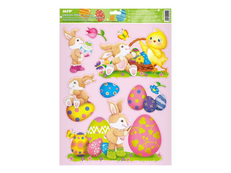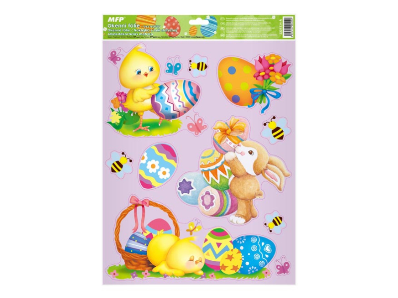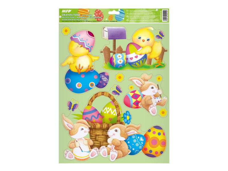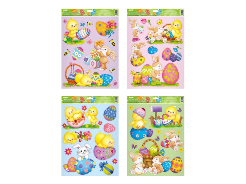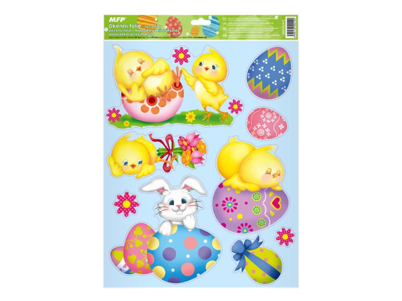 Okenná fólia veľkonočné kuriatka, vajíčka, včielky, králiky. Oslávte sviatky jari s týmito krásnymi samolepkami na okno. Vytvorí Vám kúzelnú veľkonočnú atmosféru. NÁVOD: 1. Zlúpnite obrázok z podložky a umiestnite na čisté, prípadne navlhčené sklo stranou, ktorá bola na podložke. 2. Obrázok elektrostaticky priľne. 3. Fólia sa ľahko zlúpne a dá sa premiestniť. Dodávame v mixe po 4 ks podľa skladovej zásoby. Uvedená cena je za 1 ks.