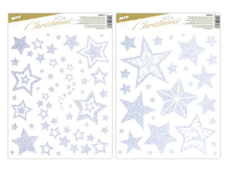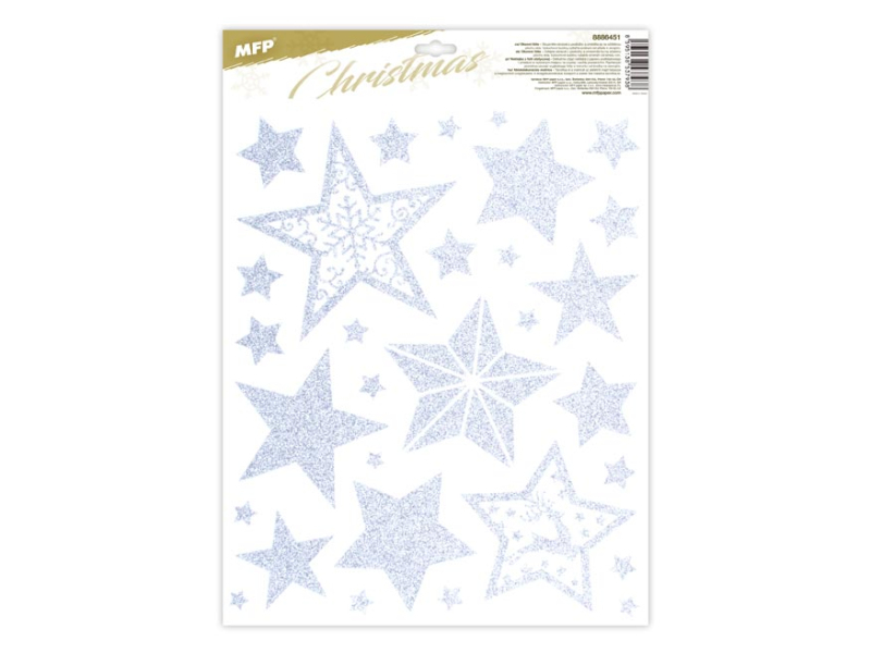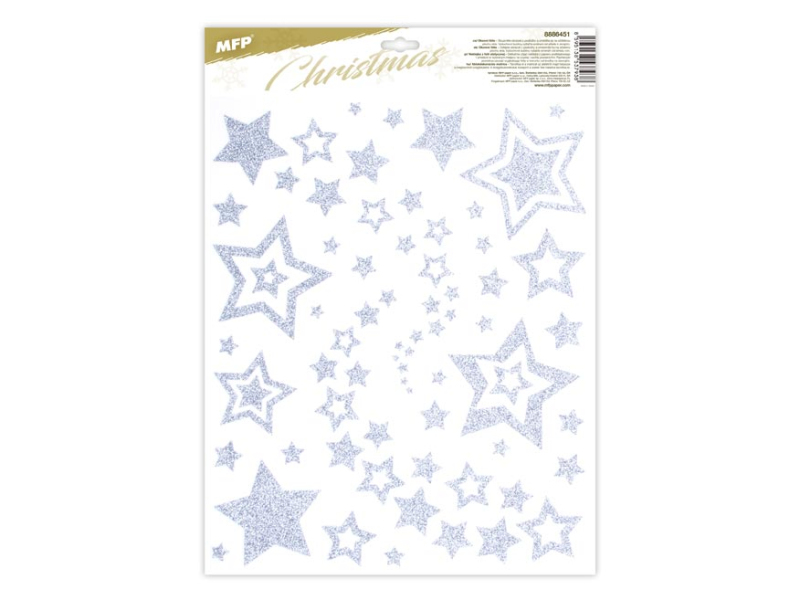 Okenná fólia hviezdy strieborná s trblietkami. Tento doplnok vytvorí vo vašej domácnosti čarovnú atmosféru. Fólia neobsahuje lepidlo, jednoducho sa elektrostaticky prilepí na čisté okno, zrkadlo atď. NÁVOD: 1. Odlepte obrázok z podkladu a umiestnite ho na čisté, prípadne navlhčené sklo tou stranou, ktorá bola na podklade. 2. Obrázok sa prilepí elektrostaticky. 3. Fólia sa ľahko zlúpne a dá sa premiestniť. Dodáva sa v kombinácii 2 podľa skladových zásob. Uvedená cena je za 1 ks.