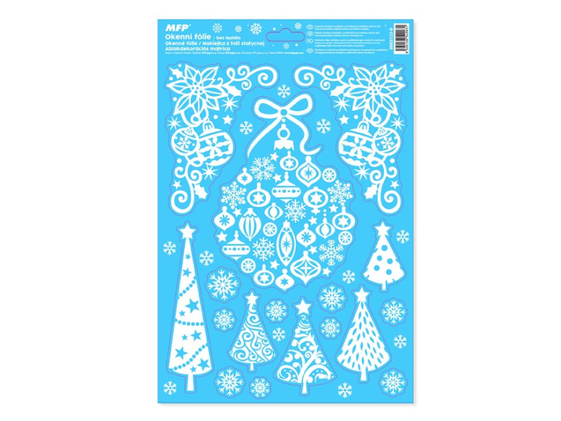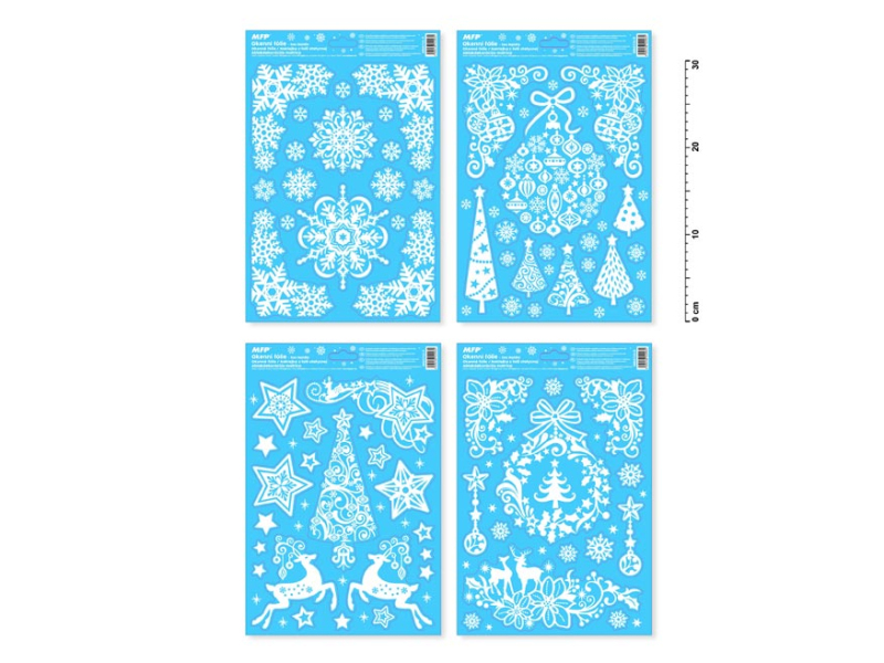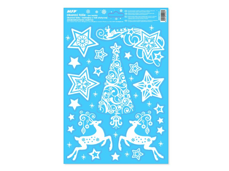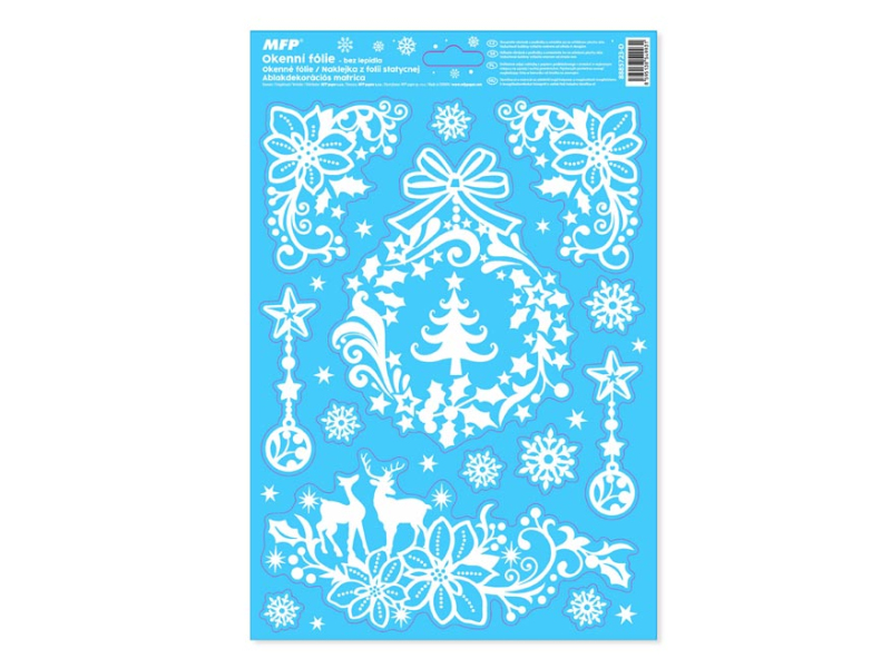 Adhézna okenná fólia bez lepidla s vianočnými motívmi (vločky, stromčeky, hviezdy). Vyzdobte si okno týmito krásnymi samolepkami na okno. Vytvoria vám čarovnú atmosféru domova. NÁVOD: 1. Odlepte z podložky obrázok a umiestnite ho na čisté, prípadne navlhčené sklo tou stranou, ktorá bola na podložke. 2. Obrázok elektrostaticky priľne. 3. Fólia sa dá ľahko odlepiť a premiestniť. Dodávame v mixe po 4 ks podľa skladových zásob. Uvedená cena je za 1 ks.
