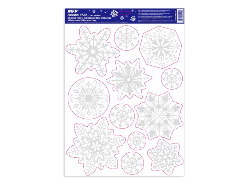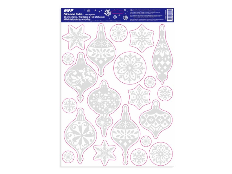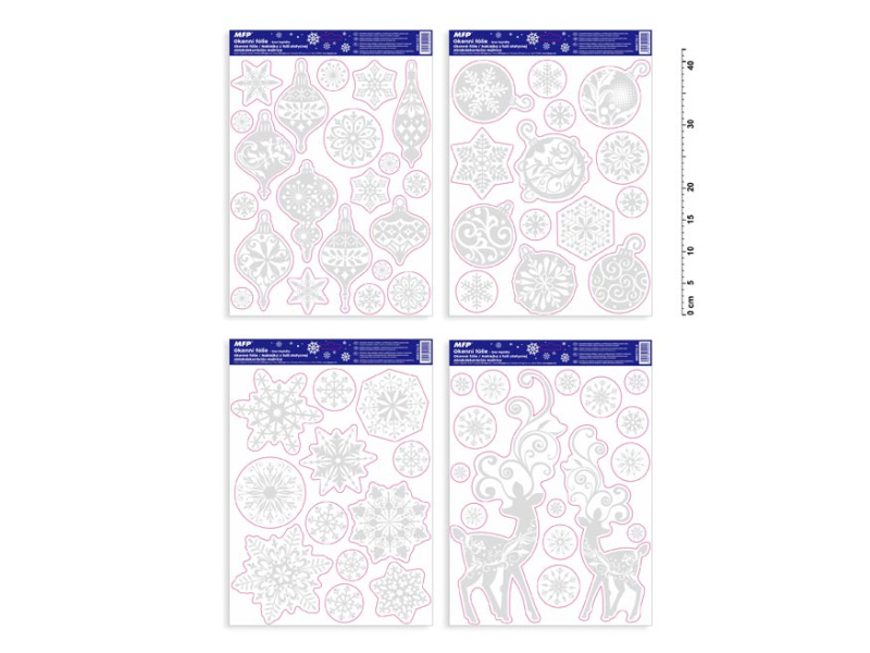Okenná fólia vianočné biele ozdoby s flitrom. Vyzdobte si okno týmito krásnymi samolepkami. Vytvoria vám čarovnú atmosféru domova. NÁVOD: 1. Odlepte z podložky obrázok a umiestnite ho na čisté, prípadne navlhčené sklo tou stranou, ktorá bola na podložke. 2. Obrázok elektrostaticky priľne. 3. Fólia sa dá ľahko odlepiť a premiestniť. Dodávame v mixe po 4 ks podľa skladových zásob. Uvedená cena je za 1 ks.
