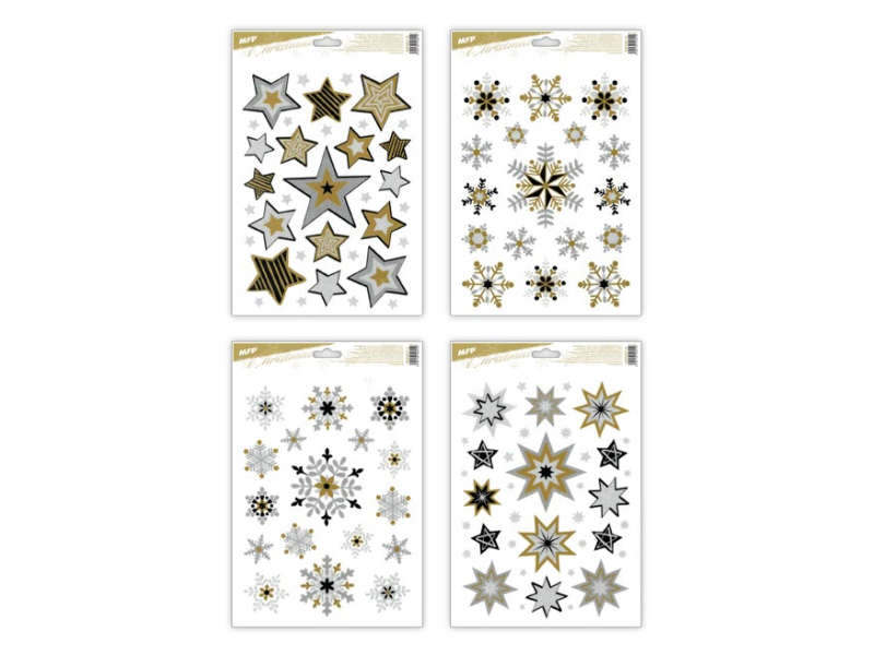 Okenná fólia glitrové vločky a hviezdy. Vyzdobte si okno týmito krásnymi samolepkami na okno. Vytvoria vám čarovnú atmosféru domova. NÁVOD: 1. Odlepte z podložky obrázok a umiestnite ho na čisté, prípadne i navlhčené sklo tou stranou, ktorá bola na podložke. 2. Obrázok elektrostaticky priľne. 3. Fólia sa ľahko odlepí a dá sa premiestniť. Dodávame v mixe po 4 ks podľa skladových zásob. Uvedená cena je za 1 ks.