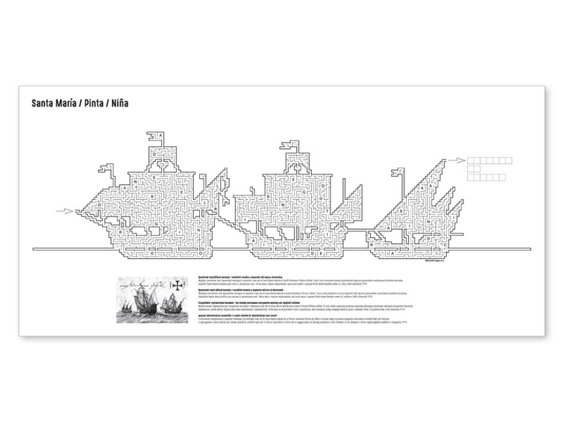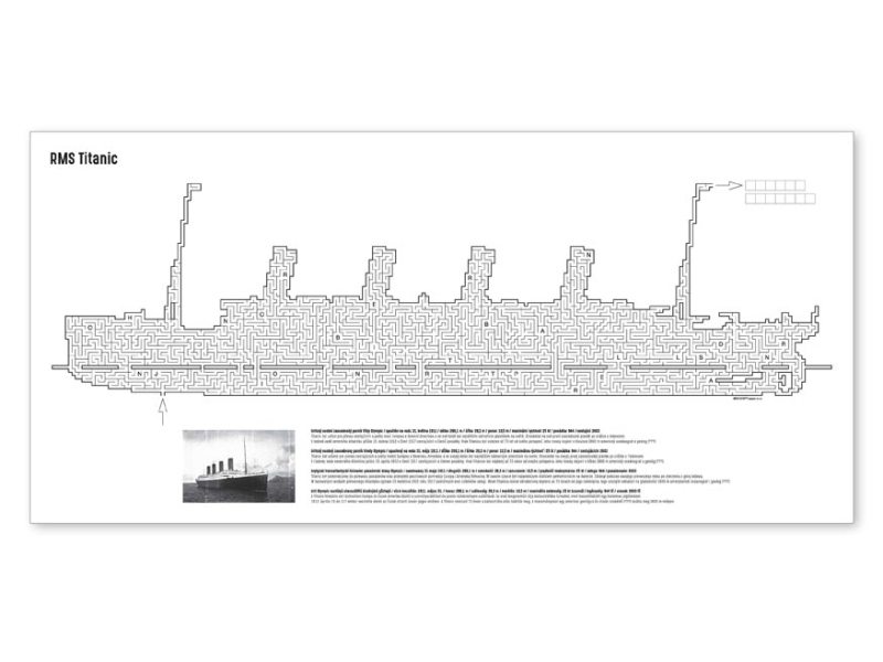 Omaľovánky MFP - Labyrint lode s tajničkou. Prijmi skutočnú výzvu a otestuj svoju trpezlivosť! Správne znenie tajničky nájdeš na jedinej možnej ceste naprieč bludiskom. Vo vnútri bludiska nájdete: 6 hárkov – Lode (RMS Titanic, Bismarck, K-141 Kursk, Maersk Mc-Kinney Moller, 50 rokov Pobedy, Santa Maria, Pinta, Niňa) Formát: A4 Obťažnosť: 7/10 Uvedená cena je za 1 ks.