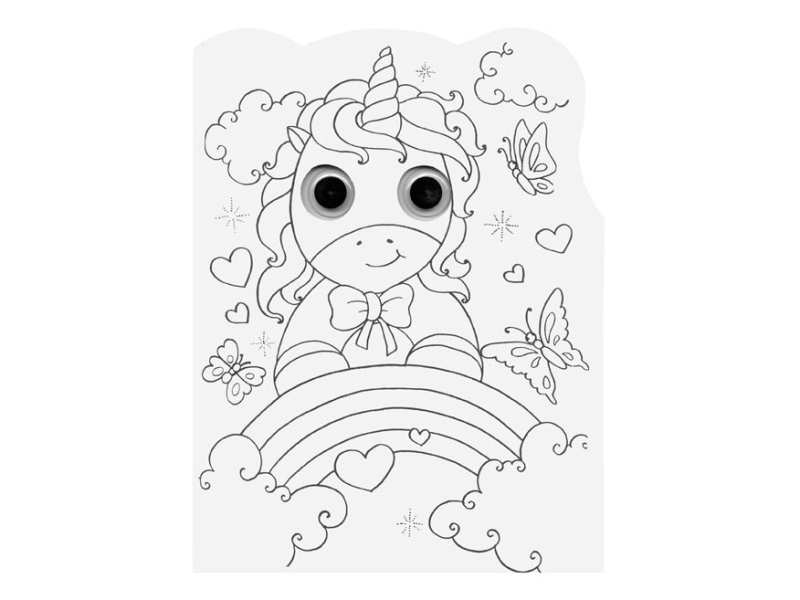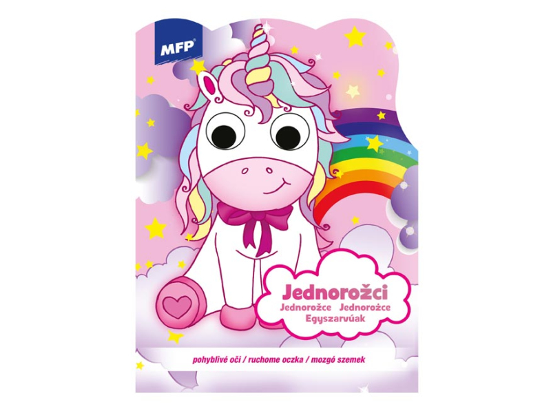 Detské omaľovánky MFP s pohyblivými očami - Jednorožce. Maľovanky sú formátu A4, obsahujú celkom 32 obrázkov na vymaľovanie. Obrázky sú natlačené na 80 g-ovom papieri, dosky maľovaniek sú na 280 g-ovom papieri sa laminovaním. Formát: A4 Počet strán: 32 strán Rozmer: 210 x 270 mm VAROVANIE: Nevhodné pre deti do 3 rokov. Nebezpečenstvo vdýchnutia a prehltnutia malých častíc. Uvedená cena je za 1 ks.