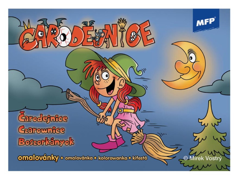 Detské omaľovánky MFP - Čarodejnice. Urobte si pohodové popoludnie so svojimi deťmi a vyfarbite obrázok. Tieto maľovanky sú jednoduché s veľkými obrázkami, takže sú vhodné aj pre najmenšie deti. Vyfarbovanie obrázkov pomôže rozvíjať celý rad zručností a schopností, najmä má veľký vplyv na jemnú motoriku. U nás si môžete kúpiť aj kvalitné farebné pastelky. Ilustroval: M. Vostrý Formát omaľovánky: A5 Počet predlôh k vymaľovaniu: 8 (čarodejnice) Počet strán: 16 VAROVANIE: Nevhodné pre deti do 3 rokov. Nebezpečie vdýchnutia a prehltnutia malých častíc. Uvedená cena je za 1 ks.