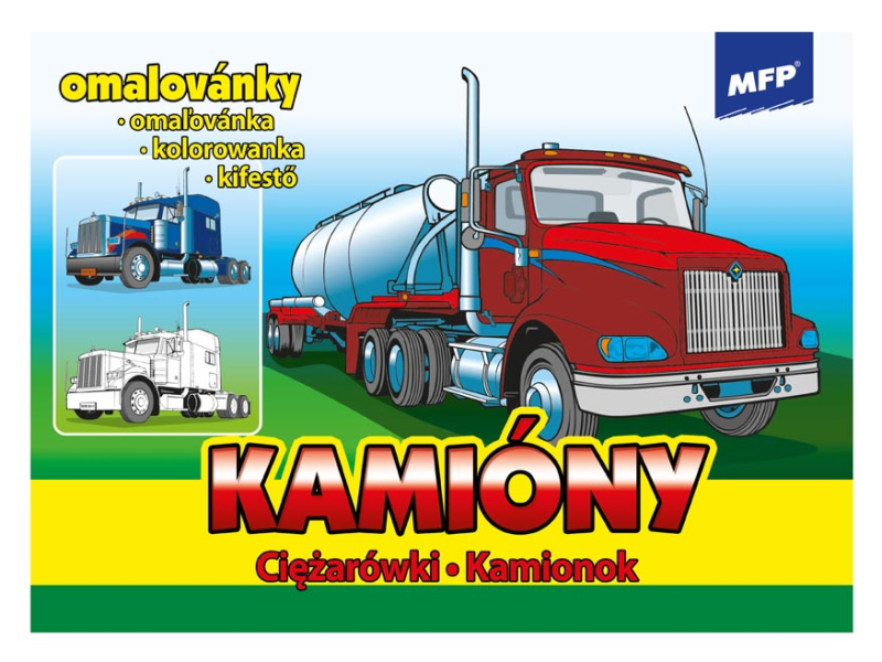 Detské omaľovánky MFP - Autá. Nájdete tu 8 obrázkov a na nich kamión, ťahač, náves, cisternu.. Urobte si pohodové popoludnie s deťmi a vyfarbite si obrázok. Tieto omaľovánky sú jednoduché s veľkými obrázkami, teda vhodné aj pre tie najmenšie deti. Vyfarbovanie obrázkov pomôže rozvíjať množstvo schopností a zručností, najmä má veľký vplyv na jemnú motoriku ruky. Zakúpiť si u nášho môžete aj kvalitné farebné pastelky. Formát omaľovánok: A5 Počet predlôh na vymaľovanie: 8 Počet strán: 16 Varovanie: Nevhodné pre deti do 3 rokov. Nebezpečenstvo vdýchnutia a prehltnutia malých častíc. Uvedená cena je za 1 ks.