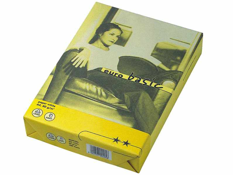 Kancelársky papier EURO BASIC A4, 80g. Papier je špeciálne vyvinutý pre vysokorýchlostné kopírovanie a výborne je použiteľný aj na každodenné použitie v tlačiarňach. Tento xerografický papier formátu A4 je výborne použiteľný aj na každodennú tlač. Farba: biela Rozmer: 210 x 297 mm Plošná hmotnosť: 80g/m2 Počet listov v balení: 500 listov POUŽITIE: - všetky druhy laserových tlačiarní - všetky druhy atramentových tlačiarní - kopírovanie v bežných kopírkach - kopírovanie vo vysokorýchlostných kopírkach - duplexné kopírovanie - faxy - multifunkčné zariadenie - písacie stroje Uvedená cena je za 1 balenie.