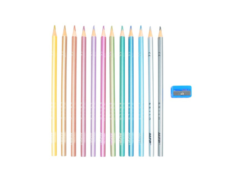 Trojhranné metalické pastelky TRIANGULAR. Trojhranný tvar uľahčuje držanie a vďaka kvalitnej tuhe sa pastelka hneď nezlomí. Krásne a kvalitné metalické farby, ktoré sa hodia ako pre farebný tak pre tmavý papier. Pastelky sú vhodné aj pre ľavákov. SÚPRAVA OBSAHUJE: - 12 ks obojstranných pasteliek (sivá, strieborná, 2 x odtiene fialovej, 2 x odtiene zelenej, 2 x odtiene modrej, ružová, 2 x odtiene žltej, hnedá) VAROVANIE: Nevhodné pre deti do 3 rokov., hrozí udusenie malými časťami a pichnutím sa ostrým hrotom. Pastelky sú uložené v papierovej škatuli so závesom. Uvedená cena je za 1 balenie.