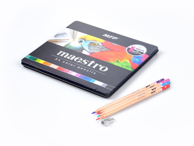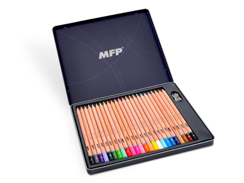 Súprava 24 ks kvalitných okrúhlych pasteliek so strúhadlom v praktickej kovovej škatuľke. Pastelky sú vhodné na kreslenie na klasický biely aj čierny papier. Ideálne na každodenné použitie a pre umelcov. Súprava obsahuje niekoľko odtieňov farieb. Ideálne ako darček. Sada pasteliek obsahuje: - strúhadlo - 24 ks pasteliek (4 x odtieň zelenej, žltej, 4 x odtieň hnedej, 4 x odtieň červenej, 3 x odtieň fialovej, 3 x odtieň modrej, 2 x odtieň bielej, sivej, 2 x odtieň čiernej) UPOZORNENIE: Nevhodné pre deti do 3 rokov, hrozí riziko udusenia malými časťami a uštipnutia ostrým hrotom. Pastelky sú uložené v kovovej škatuli. Uvedená cena je za 1 balenie.