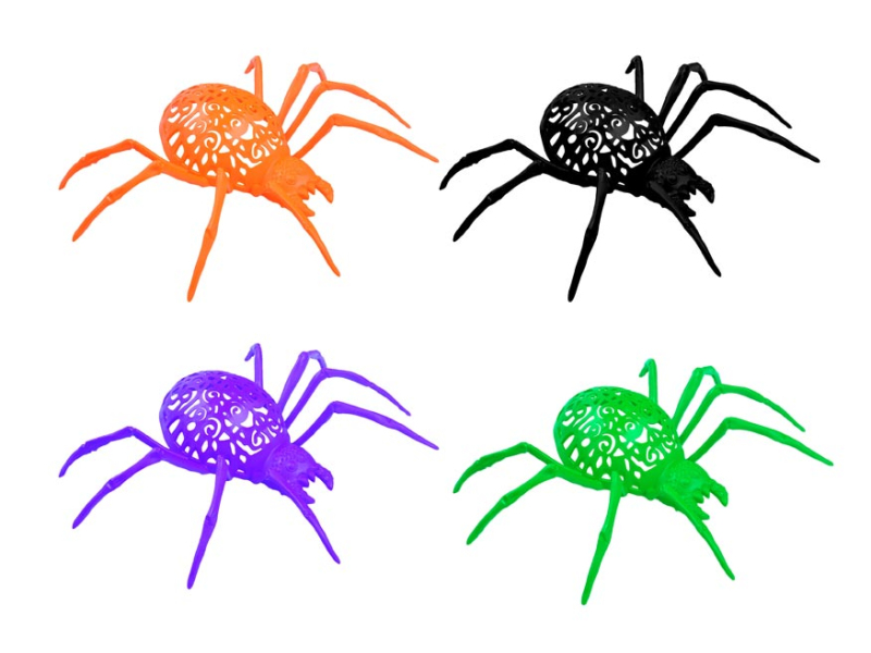 Karnevalový doplnok plastový pavúk v čiernej, oranžovej, zelenej alebo fialovej farbe. Táto dekorácia nesmie chýbať na žiadnej halloweenskej párty. Vďaka svojej veľkosti priťahuje pozornosť a v mnohých vyvoláva pocit strachu. Pavúk je vyrobený z plastu, takže je vhodný do interiéru aj exteriéru. Rozmery: 300 x 380 mm Farba: čierna, oranžová, zelená, fialová Uvedená cena je za 1 ks.