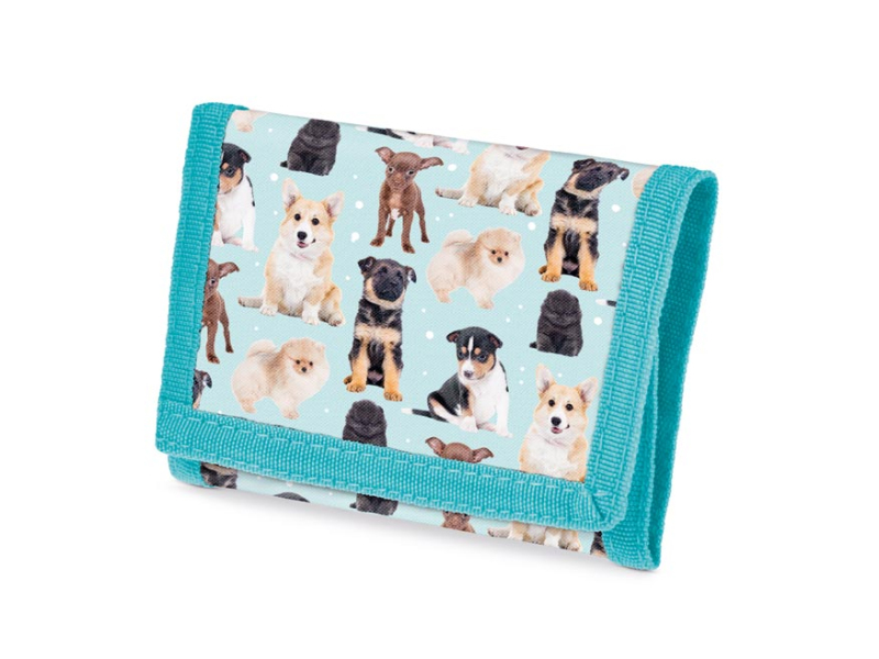Detská textilná peňaženka s obrázkom psov a zapínaním na suchý zips. Peňaženka má priehradku na bankovky, mince, kapsičku vhodnú napríklad na lístky a taktiež kapsičku s priehľadným okienkom s veľkosťou kreditnej karty. Peňaženka má kovový krúžok na kľúče a praktickú šnúrku na zavesenie na krk, vďaka ktorej ju vaše dieťatko len tak nezabudne. NÁVOD NA ÚDRŽBU: Čistiť iba s navlhčenou handrou vo vode s trochou saponátu. Textilnú časť je možné zbaviť mechanického znečistenia ľahkým okefovaním. Zásadne nepoužívať k čisteniu riedidlo, mechanicky čistiace prášky alebo agresívne čistiace prípravky. Výrobky neprať v pračke. Pri premočení nechať pozvoľna vysušiť pri izbovej teplote. Výrobok sa nesmie sušiť v kontakte ani bezprostrednej blízkosti otvorených tepelných zdrojov či sušičke prádla. Peňaženka je balená v sáčku. Uvedená cena je za 1 ks.