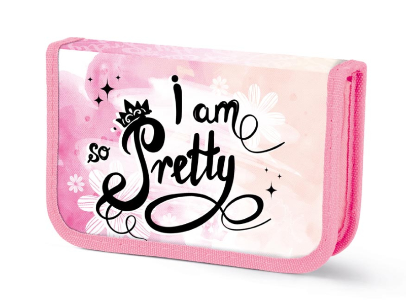 Jednoradový ružový školský peračník s textom „I am Pretty“ pre mladé slečny. Vo vnútri peračníka sú priehradky a pútka na písacie potreby. Peračník sa uzatvára zipsom a je z kvalitných a odolných materiálov. Toto školské puzdro nie je vybavené. Penál je zdravotne neškodný a neobsahuje toxické látky.