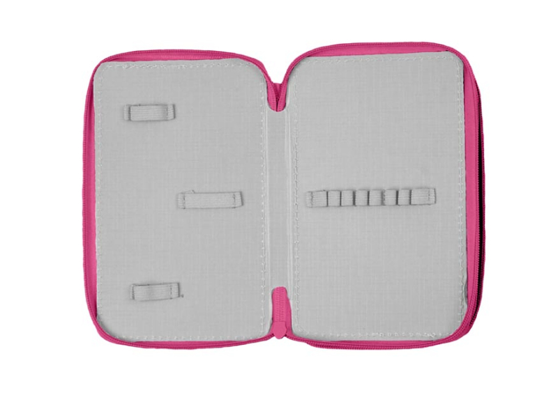 Školský dvojposchodový nevybavený peračník v sýto ružovej farbe s motívom mačiek. Peračník obsahuje 24 pútok na písacie potreby a 3 väčšie napr. na pravítko, strúhadlo, gumu alebo nožnice. Veľmi ľahko sa uzatvára vďaka veľkému zipsu a je z kvalitných a odolných materiálov. Bezpochyby je nevyhnutnou súčasťou vybavenia každého školáka. - nie je vybavený - zdravotne nezávadný a neobsahuje toxické látky ODPORÚČANIA: - čistiť iba navlhčenou handričkou vo vode s trochou saponátu Uvedená cena je za 1 ks.