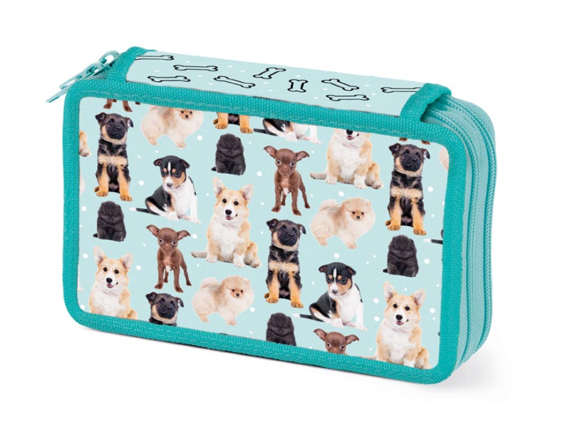 Školské dvojposchodové puzdro s dvoma chlopňami s motívom roztomilých šteniatok. Veľmi ľahko sa uzatvára vďaka veľkému zipsu. Peračník je bez výbavy. Peračník je nevyhnutná súčasť výbavy každého školáka! Peračník je zdravotne nezávadný a neobsahuje toxické látky. Toto školské púzdro nie je vybavené. Uvedená cena je za 1 ks.