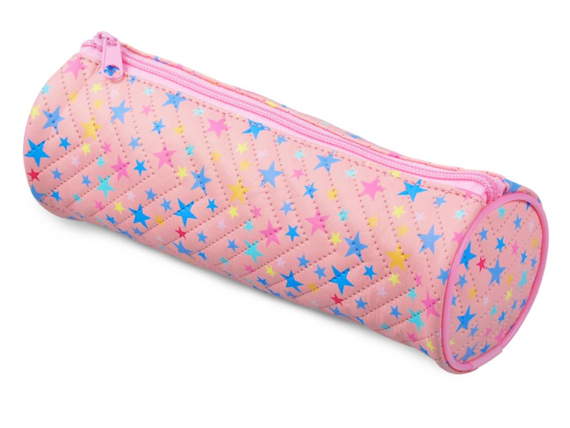 Školský peračník/etue valcového tvaru v ružovej farbe s farebnými hviezdičkami ponúka dostatok priestoru pre vaše ceruzky, perá, pastelky a ďalšie písacie potreby. Je vyrobený z mäkkého, prešívaného materiálu. Praktické zapínanie na zips zaisťuje, že všetky vaše veci zostanú bezpečne na svojom mieste. Vďaka svojmu veselému dizajnu je obľúbeným spoločníkom na každý školský deň. - nie je vybavený - zdravotne nezávadný a neobsahuje toxické látky ODPORÚČANIE: - čistiť iba navlhčenou handričkou vo vode s trochou saponátu Uvedená cena je za 1 ks.