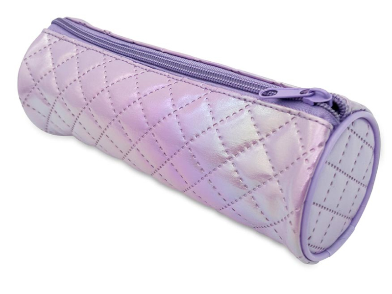 Školský peračník/etue valcového tvaru v jemnej fialovej farbe má lesklý, perleťový povrch, ktorý odráža svetlo a mení odtiene podľa uhla pohľadu. Povrch je ozdobený prešívaným vzorom v tvare kosoštvorcov. Zips a okraje peračníka sú tiež ladené do fialovej farby, čím sa celý dizajn krásne zjednocuje. Je ideálny na uloženie písacích potrieb, ako sú ceruzky, perá či pastelky, a vďaka svojmu lesklému povrchu pôsobí luxusným dojmom. - nie je vybavený - zdravotne nezávadný a neobsahuje toxické látky ODPORÚČANIE: - čistiť iba navlhčenou handričkou vo vode s trochou saponátu Uvedená cena je za 1 ks.