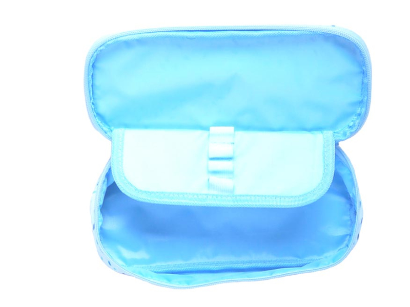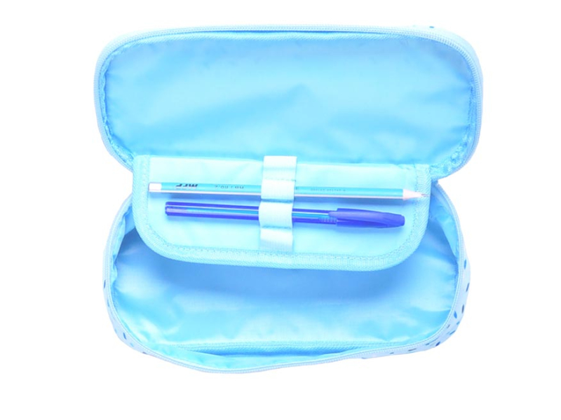 Školské puzdro s chlopňou v svetlomodrej farbe s farebnými zrnami. Je vhodným doplnkom pre študentov a starších školákov. Vo vnútri puzdra je dostatok priestoru na uloženie všetkých písacích potrieb. Veľmi ľahko sa zatvára vďaka veľkému zipsu. Toto školské puzdro nie je vybavené. Peračník je zdravotne nezávadný a neobsahuje toxické látky. Uvedená cena je za 1 ks.