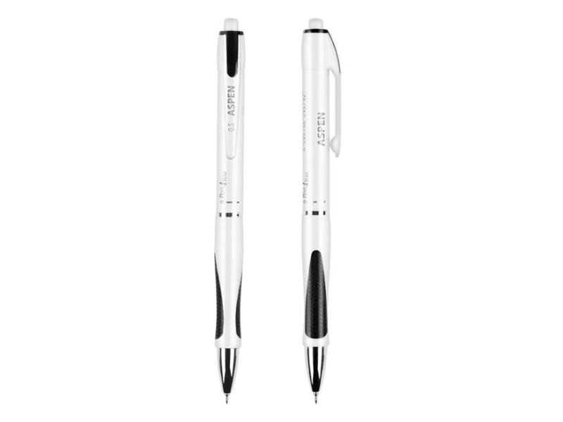 Kvalitné, plastové pero s vymeniteľnou náplňou ASPEN. Toto guľôčkové pero je ergonomicky tvarované a príjemne sedí v ruke. Pogumované uchopenie pera zabraňuje kĺzaniu pera v ruke. K plastovému peru môžete použiť náplň 0,5 Náplň FINESTY NEEDLE TIP červená 0,5mm 5400165 Náplň FINESTY NEEDLE TIP modrá 0,5mm 5400166 Náplň FINESTY NEEDLE TIP čierna 0,5mm 5400171 Prevedenie: stláčací mechanizmus Počet kusov v balení: 50 ks Farba: čierna Dĺžka: 145 mm Všetkých 50 ks je balených v papierovej krabičke. Uvedená cena je za 1 ks.