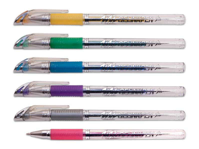 Set 6 ks gélových pier v GLITTROVÝCH farbách s hrotom 1 mm. Vhodná pre školské, kancelárske, ale aj domáce použitie. Gélové pero má pogumovaný úchop, a tak zabraňuje kĺzaniu v ruke. Počet ks: 6 Dĺžka: 150 mm Náplň: 5400152 Prevedenie: s vŕškom Farba: strieborná, fialová, modrá, zelená, žltá, ružová Dodávame v plastovom púzdre. Uvedená cena je za 1 balenie.