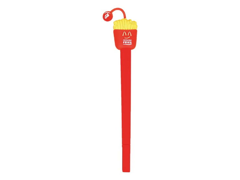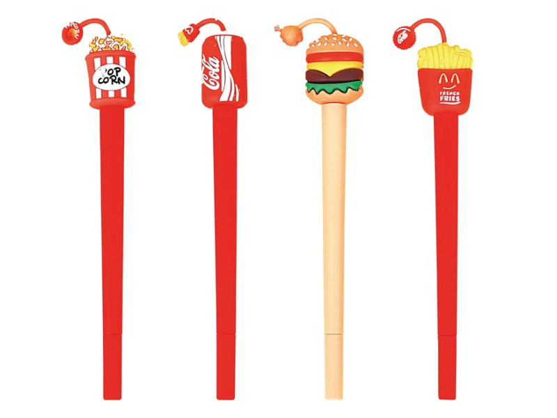 Zábavné gélové pero s modrou náplňou s motívom rýchleho občerstvenia. Pero sa pohodlne drží a vďaka gélovej náplni sa s ním ľahko píše. Motív: popcorn, kola, hamburger, hranolky Farba: červená, béžová Dostupné v 4 motívoch podľa skladovej dostupnosti. Uvedená cena je za 1 ks.
