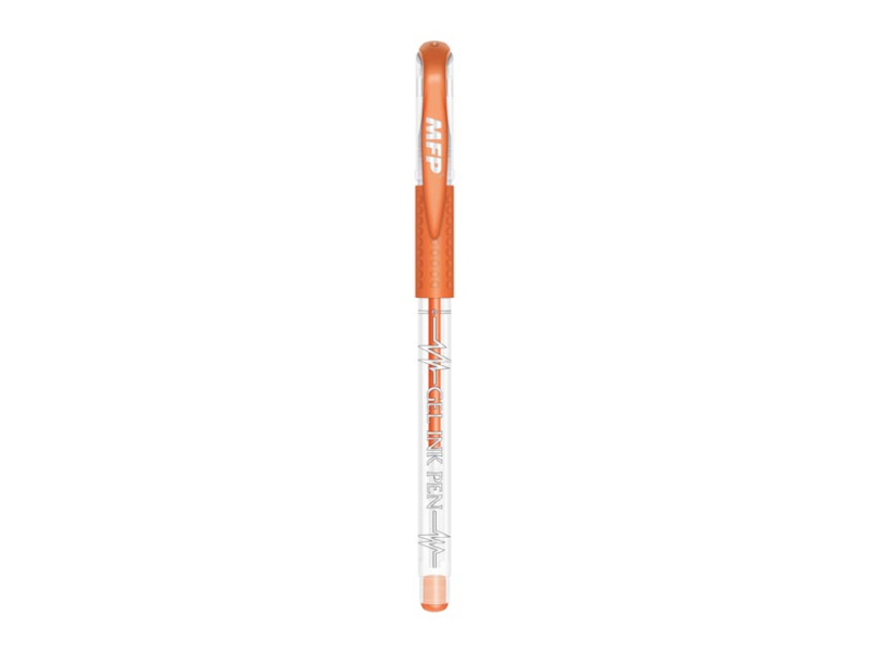 Gélové pero GN1038 s hrotom 0,5 mm. Vhodné pre školské, kancelárske, ale aj domáce použitie. Gélové pero má pogumovaný úchop, a tak zabraňuje kĺzaniu v ruke. Dĺžka: 150 mm Náplň: 5400152 Farba: oranžová neón Prevedenie: s vŕškom Počet kusov v balení: 12 ks Všetkých 12 ks je balených v papierovej krabičke. Uvedená cena je za 1 ks.
