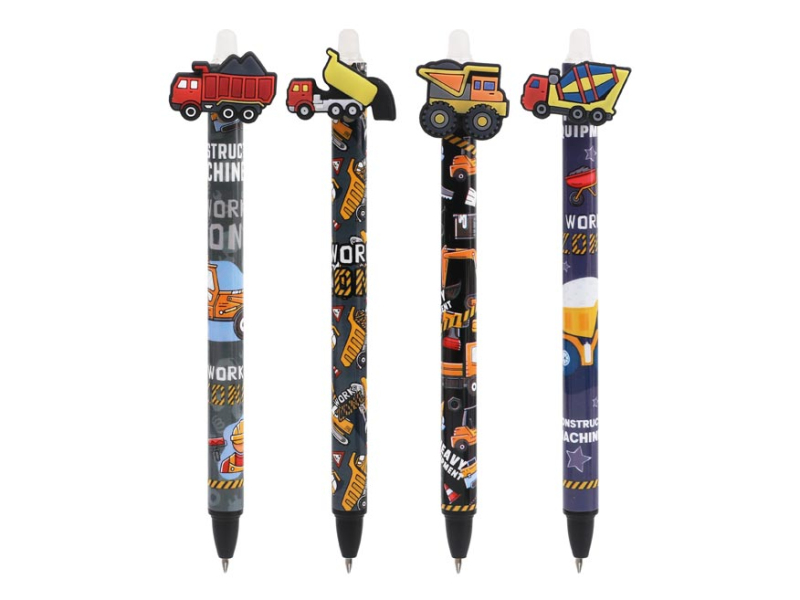 Gumovacie guľôčkové pero s motívmi pracovných áut obsahuje špeciálny atrament, ktorý sa nazývame vymaž a prepíš alebo vymaž a nechaj ho znovu objaviť. Ak urobíte chybu, stačí pero otočiť a plastovým hrotom text vymazať. Hrot zahreje atrament, ten zmizne a dá sa znova napísať. Môžete dokonca písať tajné správy, po vymazaní stačí papier ochladiť pod bod mrazu a text sa znovu objaví. Toto gumovacie pero je balené v papierovom stojane po 20 ks. Prečítajte si, na akom princípe funguje gumovacie pero Wizard! Náplň: 0,5 mm Motív: pracovné autá Počet kusov v balení: 36 ks Náplň: 5400196 modrá gélová Prevedenie: stláčací mechanizmus Dodáva sa v mixe po 4 ks podľa skladovej dostupnosti. Uvedená cena je za 1 ks.